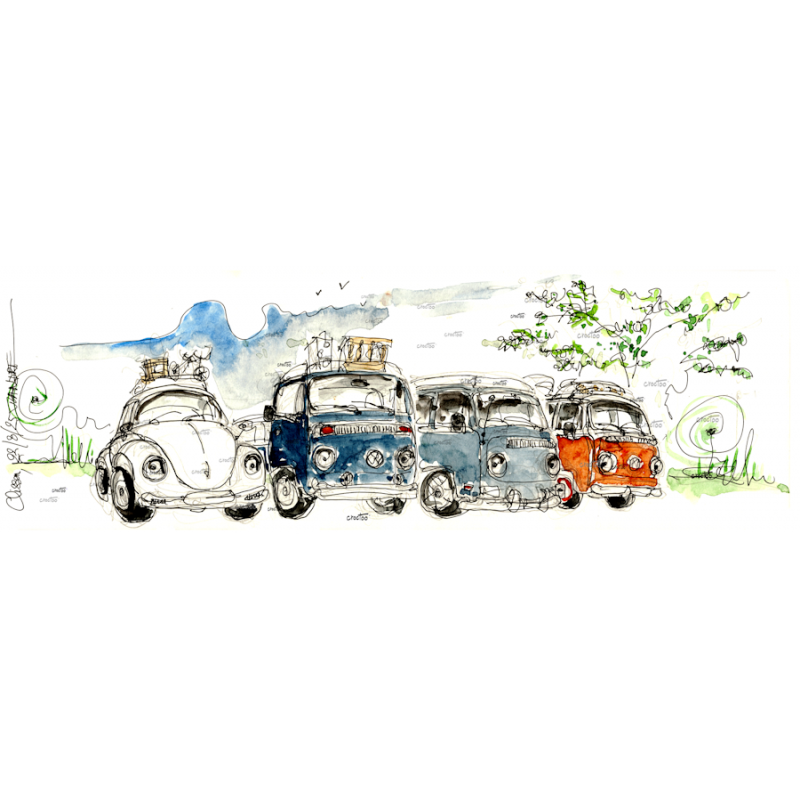 Air cooled Clisson 2025 ; reproduction d'un croquis encre et aquarelle de 2025