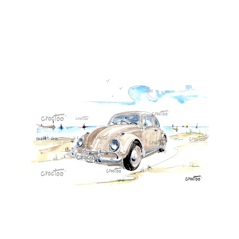 Une Cox pour le fun ! Reproduction d'un croquis aquarellé de 2025