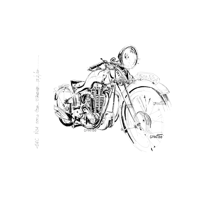 Incroyable MGC 500 ! ... une moto française : Reproduction d'un dessin à l'encre de 2025